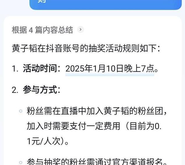 黄子韬的抽奖活动需要满足两大条件:首先,参与者必须关注他的社交账号,完成这一点相对简单。其次,参与者需要在直播时加入粉丝团,而加入粉丝团需要支付0.1元的费用,虽然费用不高,但仍有粉丝不愿意支付。
