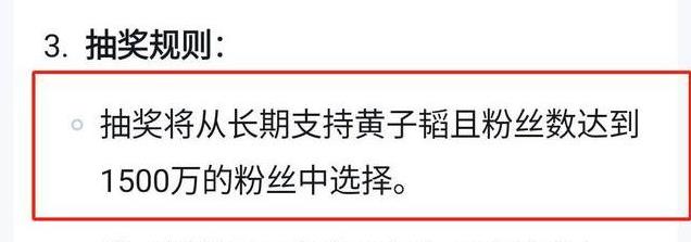 值得注意的是,仅在前1500万名粉丝中抽取幸运者,而后续加入的粉丝则没有参与机会。虽然黄子韬的亲友和员工被排除在外,但大批新粉丝因为没有参与机会而感到不满。